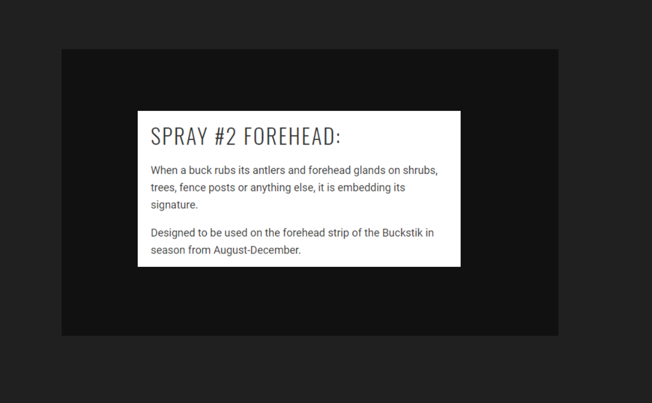 Deer use their sense of smell as their primary communication method with other deer. These scents come from 3 primary glands: Preorbital, forehead, and interdigital. Buckstik has developed a line of all three glands that are 100% pure and 100% natural. Processed in a laboratory setting to ensure purity and consistency these highly coveted glands have an unlimited shelf life, low evaporation rate, and unlike urines have no usage restrictions. A VERY powerful attractant, just one or two sprays are all that are needed to bring in dominant bucks.